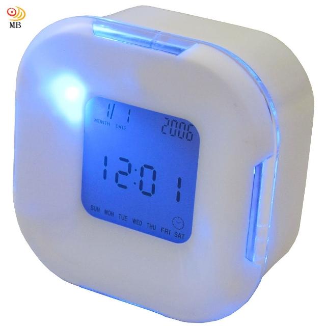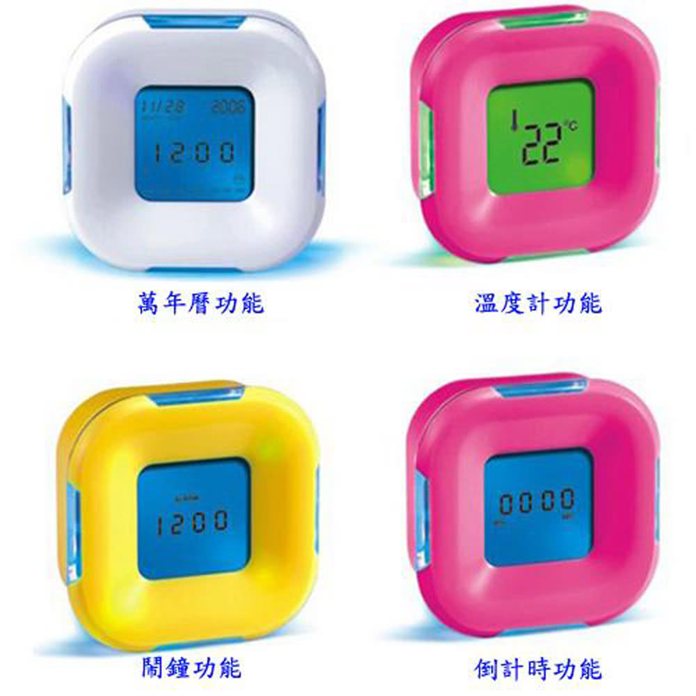 具備【萬年曆、鬧鐘、倒數計時、溫度計】四合一功能。