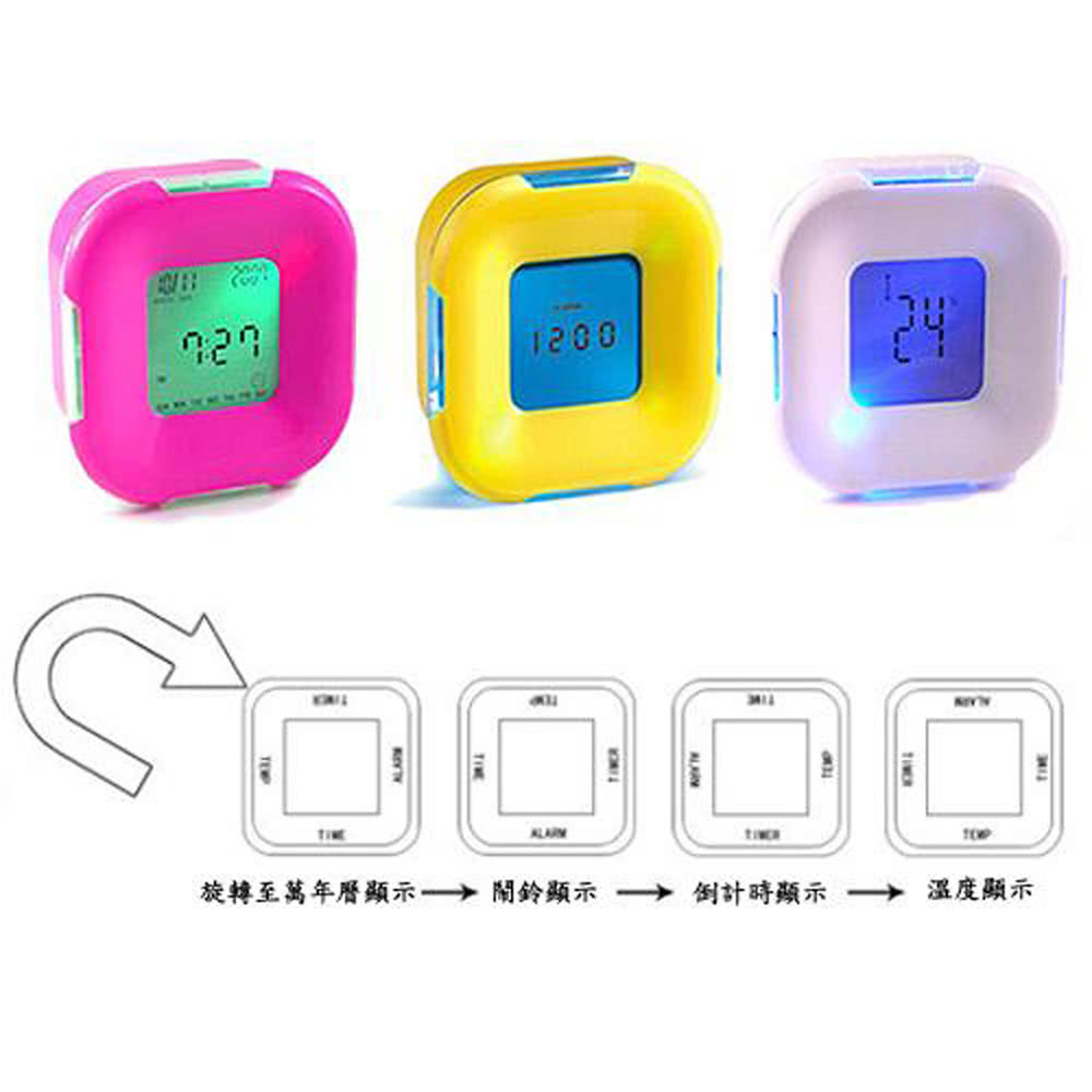 垂直翻轉每一面各有其不同功能包括萬年曆、鬧鐘、計時器、溫度計,讓您一鐘在桌包辦各種必備資訊,不僅功能強大外觀更讓人雙眼為之一亮。
